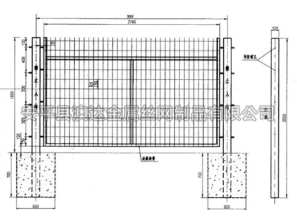 三、鐵路防護柵欄技術要求3.1鋼筋混凝土立柱金屬網片防護柵欄由立柱、網片及連接部件組成,防護高度1.8m。